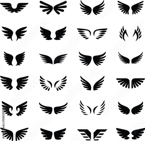 Collection of diverse black wing icons on a white background