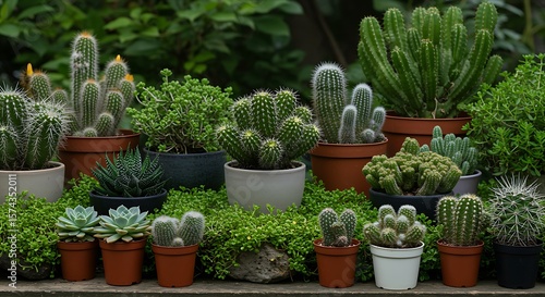 Collection of Diverse Cacti and Succulents in Terracotta Pots, A Vibrant Display of Desert Plants