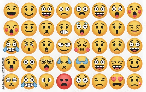 Collection of diverse emoji faces expressing various emotions and reactions