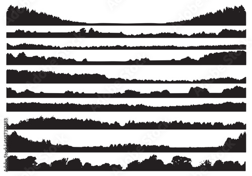 Collection of diverse forest and tree silhouettes for landscape design elements white background