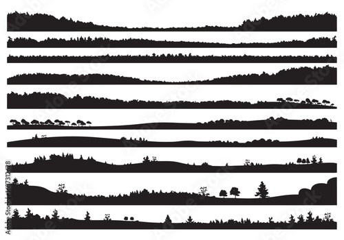 Collection of diverse natural landscape silhouettes for graphic design backgrounds white background