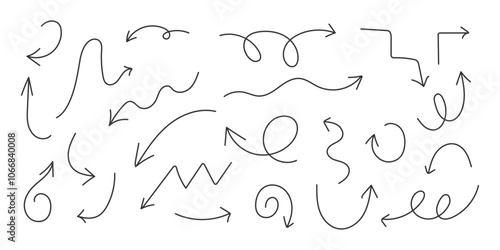 Collection of Doodle arrows. Hand drawn scribble arrow. Line Drawing Sketch illustration. Element for highlighting points in infographics, notes, graphic design projects, education