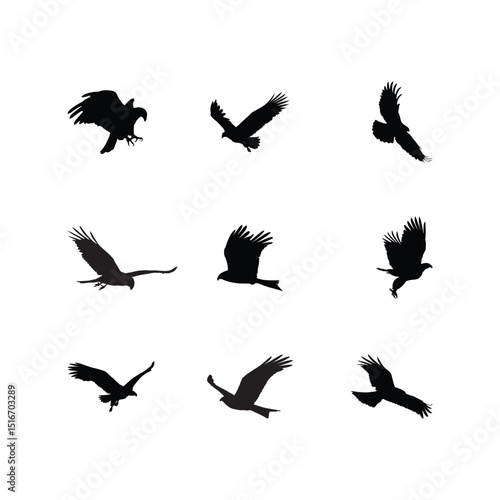 Collection of Eagle Silhouettes in Flight and Hunting Positions