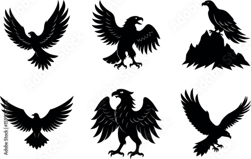 Collection of eagle silhouettes in various poses silhouette vector illustration