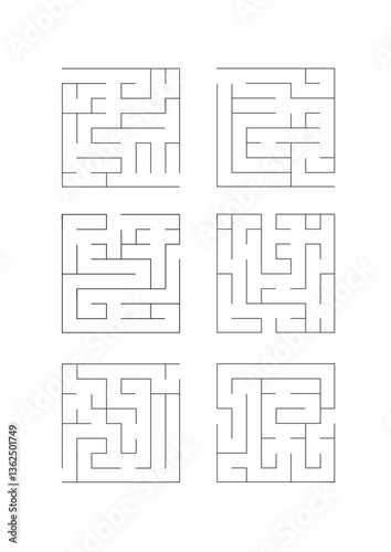 Collection of easy maze puzzle game. Black and white labyrinth business concept. Labyrinth for smart kids and children
