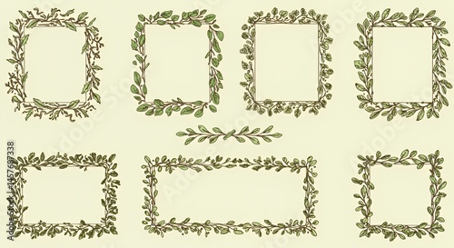 Collection of Eight Elegant Botanical Frames: Green Leaf Borders for Design
