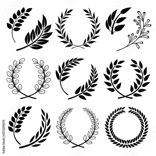 Collection of Elegant Black and White Laurel Wreaths Vector Graphics for Design