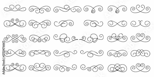 Collection of elegant black decorative swirls and flourishes for design elements