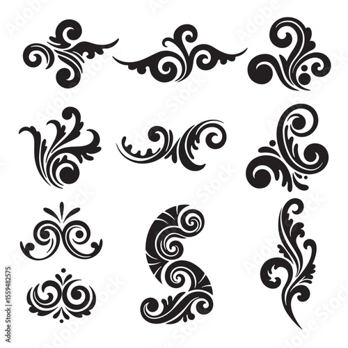 Collection of elegant vintage art silhouette swirls and flourishes ideal for decorative design elements or luxurious artwork