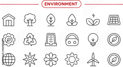 Collection of environmental icons and symbols on a black background