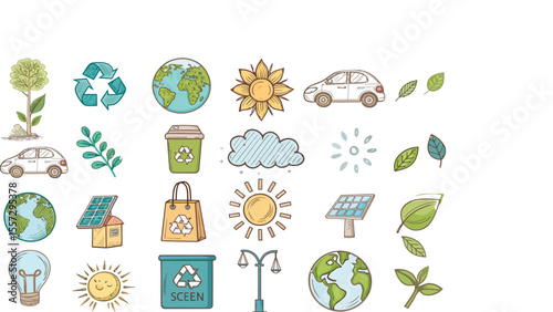 Collection of environmental line icons representing nature and sustainability isolated on transparent background
