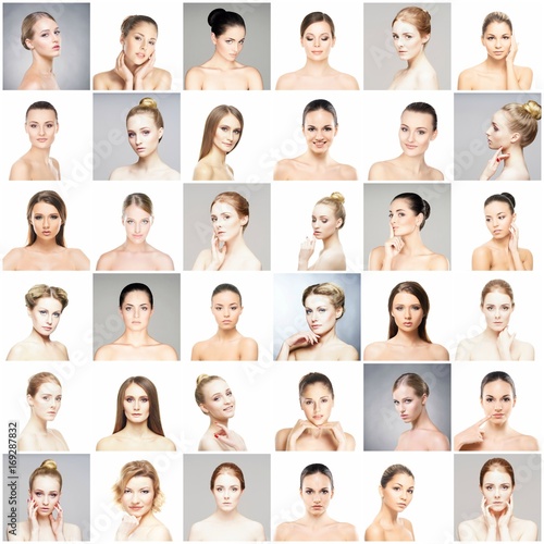 Collection of female spa portraits. Faces of different women. Face lifting, skincare, make-up concept.
