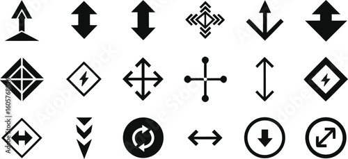 Collection of fifteen black vector arrow icons on a white background symbol direction