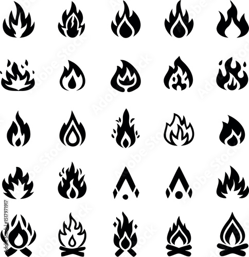 Collection of Flame and Fire Icons with Campfire Element for Design