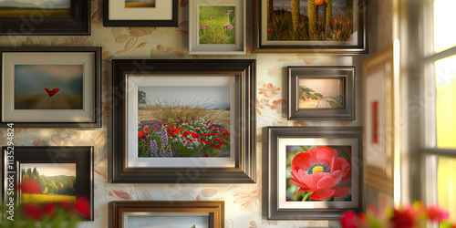Collection of Framed Nature Photographs on Wall