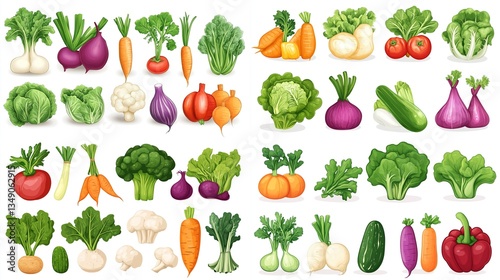 Collection of fresh vegetables, isolated on white background.