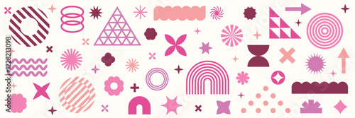 Collection of geometric graphic elements. Brutalist style abstract shapes. Retro design. Vector illustration