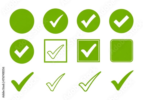 Collection of green checkmark icons in various shapes and styles for your design needs