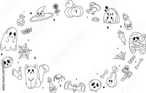 Collection of halloween silhouettes icon and character, set of elements for halloween, doodles set halloween, mystical set, trick or treat, line art illustrations