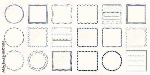 Collection of hand drawn decorative doodle frames and borders in various shapes and styles