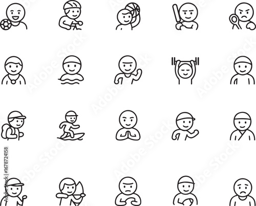 Collection of hand drawn doodle icons representing diverse human emotions and activities in a simple sketch style