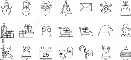 Collection of hand drawn outline christmas icons for festive design and decoration