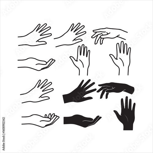 Collection of hand gestures and poses in outline and silhouette