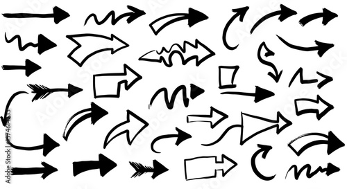 Collection of HandDrawn Black Arrows in Various Styles and Directions 2.
