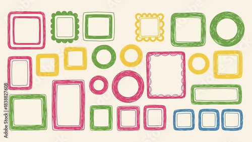Collection of Hand-Drawn Decorative Frames and Borders in Various Shapes and Colors