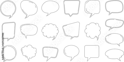 Collection of hand-drawn speech bubbles in various shapes, perfect for communication themed
