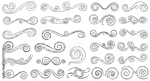 Collection of hand-drawn swirling decorative elements, perfect for design projects.