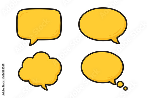 Collection of hand-drawn yellow speech and thought bubbles. Vector graphic set for comics, dialogue, and chat. Flat design communication icons and message balloons isolated.