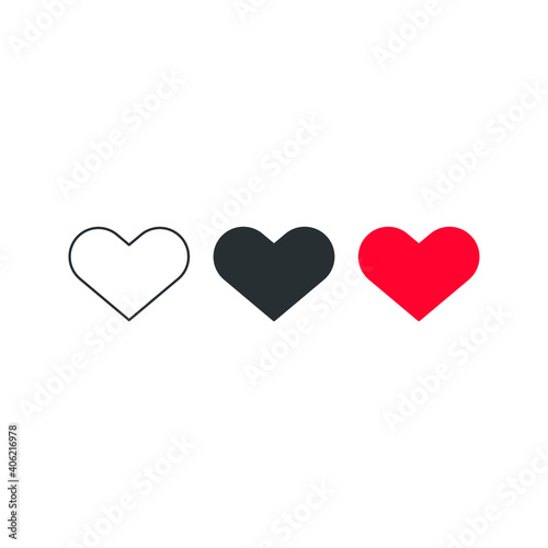 Collection of Heart icon, Symbol of Love Icon flat style modern design Isolated on Blank Background color editable