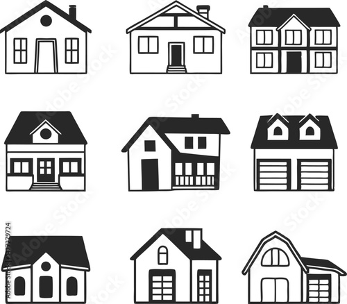 Collection of home icons. House icons set. Hand drawn House collection. Set of houses icons