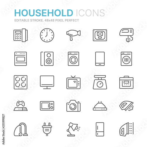 Collection of household line icons. 48x48 Pixel Perfect. Editable stroke