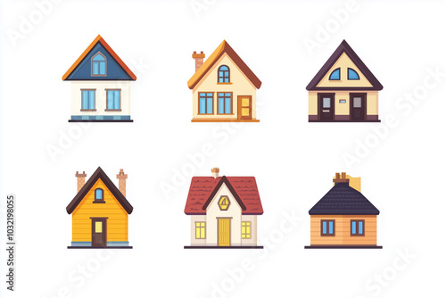 collection of houses with different styles and colors. Some are small and some are large. The houses are all lined up in a row