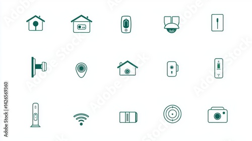 Collection of icons representing various smart home technologies and features for home automation control and security