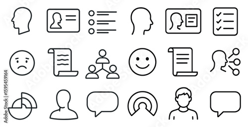 Collection of icons that include a smiling face, a sad face, a person with a check mark, and a person with a smiley face