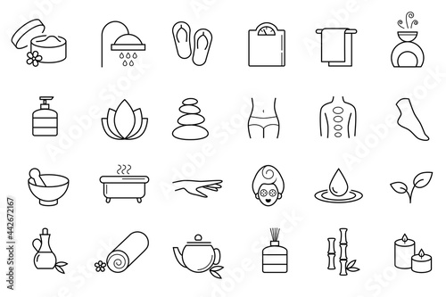 Collection of linear, modern style spa, wellness icons. Vector art.