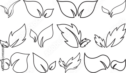 Collection of minimalist leaf outline vector icons in elegant styles, ideal for eco branding, natural product packaging, organic labels, botanical illustrations, and wellness-themed designs.