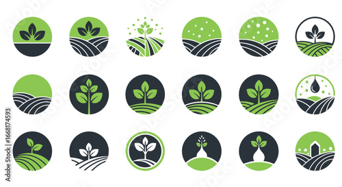 Collection of modern circular logos symbolizing growth, agriculture, and nature