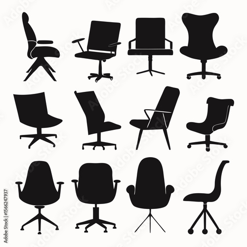 Collection of Modern Office Chair Silhouettes Design Icons for Interior Decor & Workspace