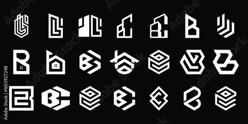 collection of monogram initial letter B abstract logo design vector, icon for real estate, business and construction.