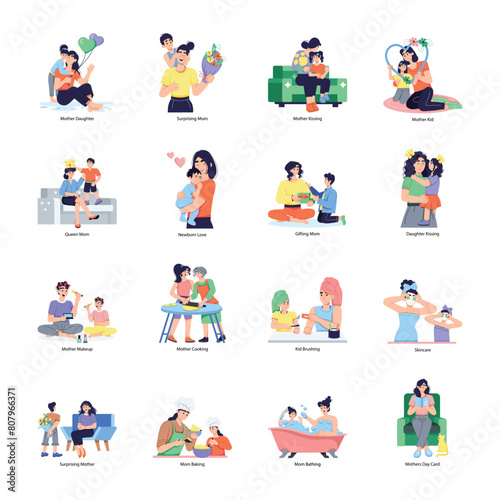 Collection of Mothers Day Flat Illustrations