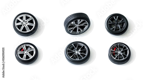 Collection of New Car Tires Displayed on a Transparent Background Generative AI