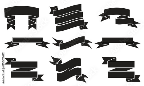 Collection of nine elegant black ribbon shapes for design and decoration elements