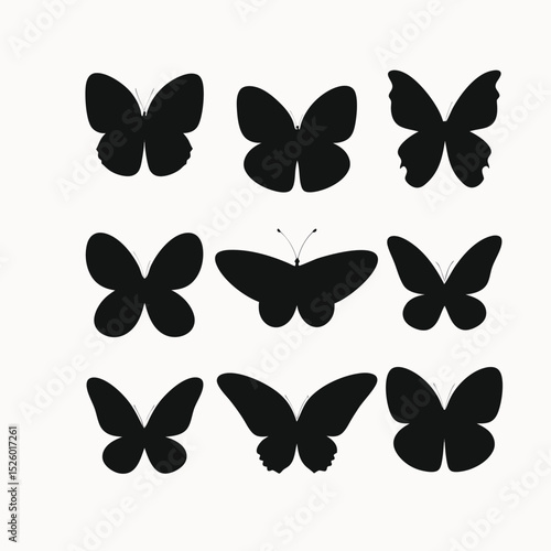 Collection of Nine Elegant Butterfly Silhouettes Perfect for Design Projects