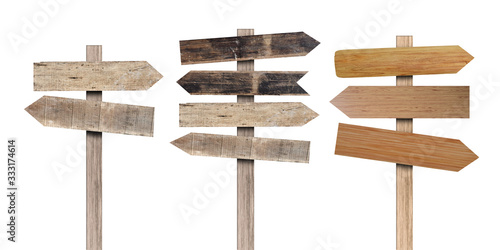 Collection of old various wooden sign isolated on white background. Object with clipping path.