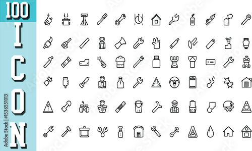 Collection of One Hundred Line Art Icons Representing Various Tools and Professions