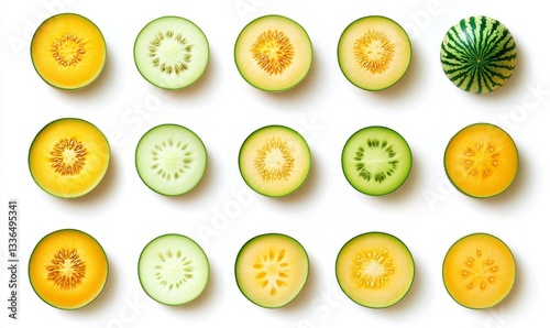 collection of organic natural full sliced banana punch, rock melon and pumpkin fruit isolated on a white png background with shadows, for online menu shopping list ready for any background